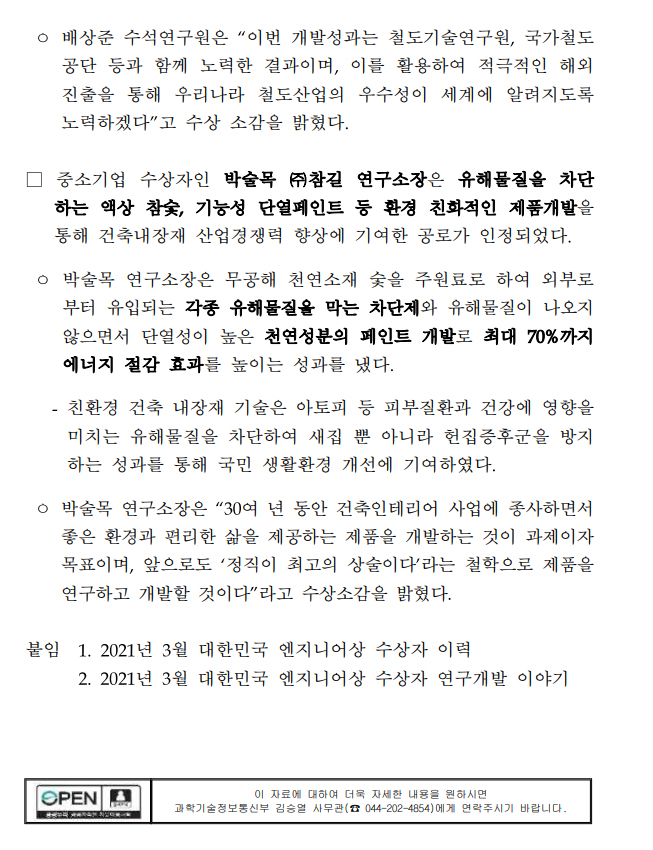 3월 대한민국 엔지니어상 (과힉기술정보통신부 보도자료) 페이지 정보 작성자 최고관리자 작성일21-03-17 10:30 조회37,075회 댓글0건 관련링크 본문 3월 대한민국 엔지니어상 (과힉기술정보통신부 보도자료) 댓글목록 등록된 댓글이 없습니다. 이전글 다음글 목록