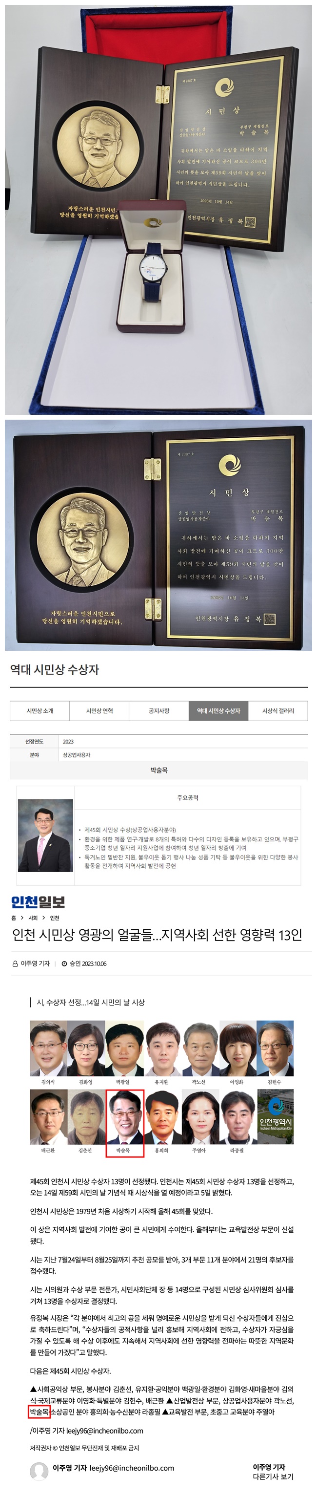 인천시민상 기사보도자료