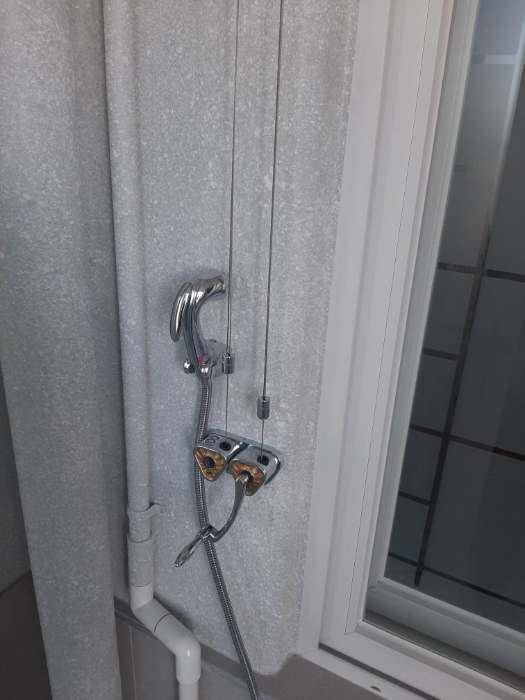 설치해주신 기사님 말씀에 의하면 50KG까지 버티는 와이어라고 하니, 그정도까진 아니더라도 실제 빨래건조시에는 불안하지 않을 것 같습니다.
